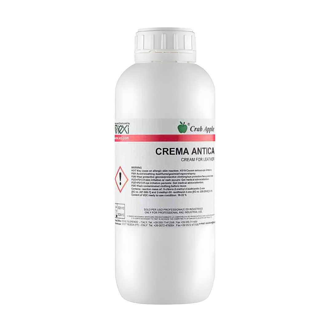 Meltonian Crema Antica, 1 litre ambalajda antik deri efekti oluşturmak için kullanılan krem formülasyonlu bitim ürünüdür. Deriye derinlik ve karakter kazandırarak vintage bir görünüm elde edilmesini sağlar.